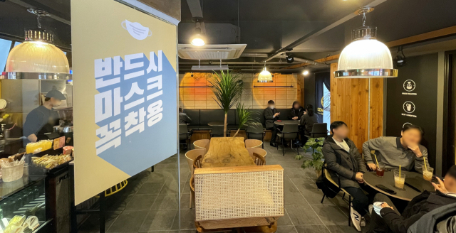 오는 30일부터 실내 마스크 착용 의무가 자율·권고로 전환된다. 24일 부산 시내의 한 가게 입구에 마스크 착용을 알리는 안내문이 붙어 있다. 정종회 기자 jjh@