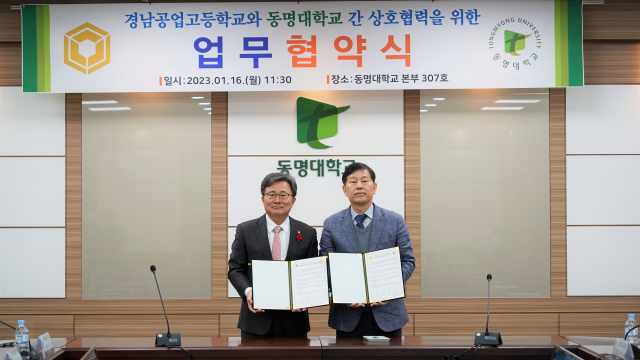 부산 동명대학교(총장 전호환)는 최근 대학본부 경영관 307호에서 경남공업고등학교(교장 정도건)와 21세기 창의적인 인재 양성을 위한 업무협약을 체결했다.
