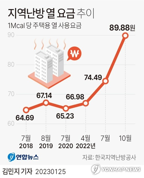 지역난방 가구에 부과되는 열 사용요금 역시 지난 한 해 38% 상승했다. 전기료는 지난해 세 차례(4·7·10월)에 걸쳐 kWh(킬로와트시)당 19.3원 오른 데 이어, 올해 1분기(1~3월)에만 13.1원 급등했다.