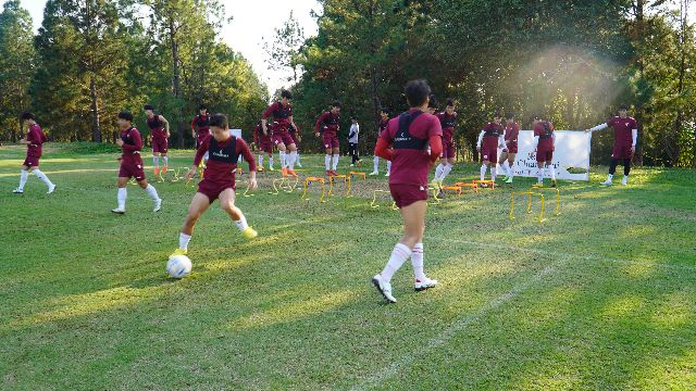 태국 치앙마이에서 동계 전지훈련 중인 부산아이파크 선수들이 지난 19일 로열 치앙마이 리조트 훈련장에서 훈련하고 있다. 부산아이파크 제공
