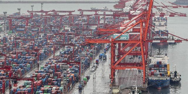 부산항 신선대부두와 감만부두에서 컨테이너 하역작업이 진행되고 있다. 부산일보DB