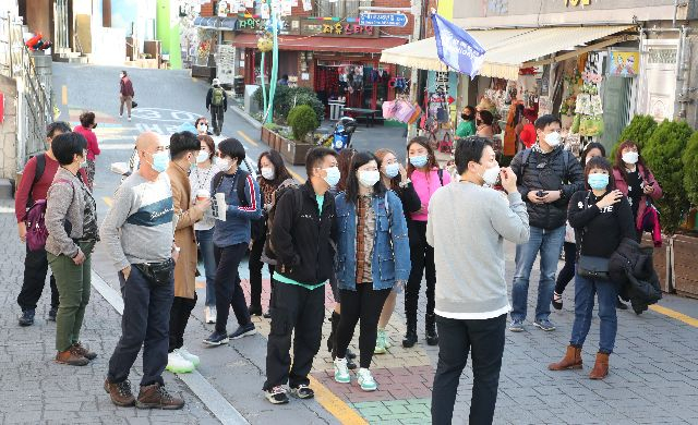 부산 사하구 감천문화마을을 찾은 외국인이 관광객들. 부산일보DB