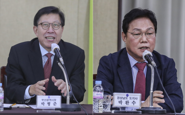 박형준 부산시장(왼쪽)과 박완수 경남도지사. 연합뉴스