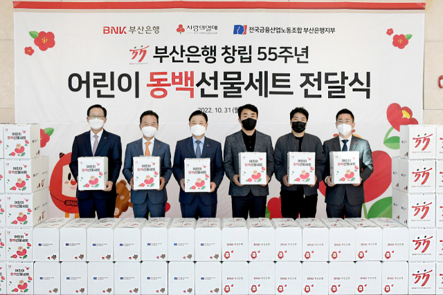 ‘어린이 동백 선물세트’ 전달식. BNK부산은행 제공