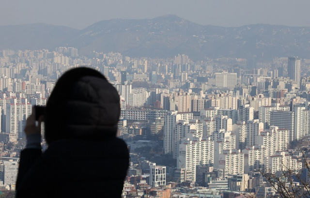 지난해 12월 기준 전국 미분양 주택이 6만호 훌쩍 넘었다. 한달 만에 1만 호 이상 늘어났다. 원희룡 국토교통부 장관은 미분양 6만호는 “국토부는 미분양 아파트 6만 2000가구를 위험선으로 보고 있다”고 말한 바 있다. 사진은 서울 남산에서 바라본 아파트 단지의 모습. 연합뉴스