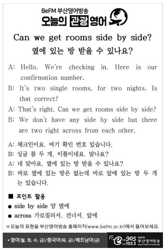 [관광 영어] 옆에 있는 방 받을 수 있나요?