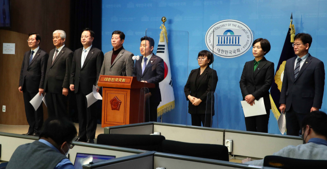 더불어민주당 부산·울산·경남 국회의원과 시도당위원장들이 31일 국회 소통관에서 윤석열 정부와 국민의힘의 가덕신공항 홀대를 좌시하지 않겠다는 내용으로 기자회견을 하고 있다. 김종호 기자 kimjh@