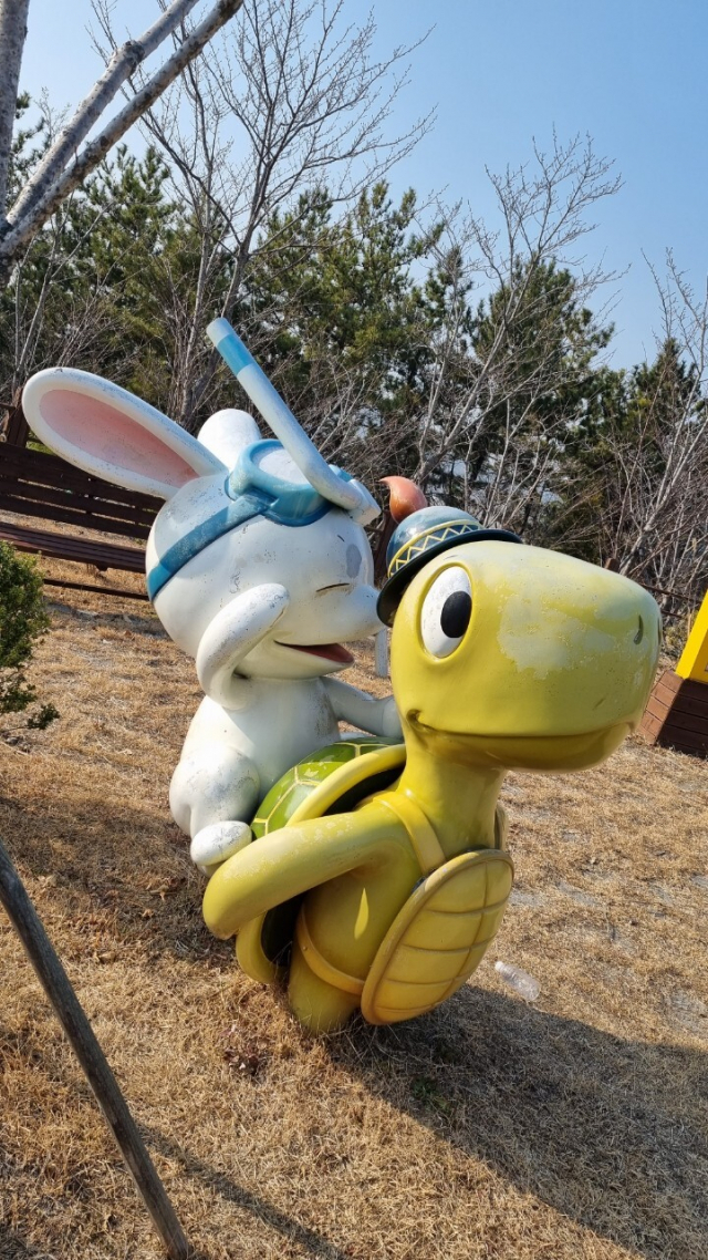 경남 사천 비토섬에 있는 별주부전 조각상.