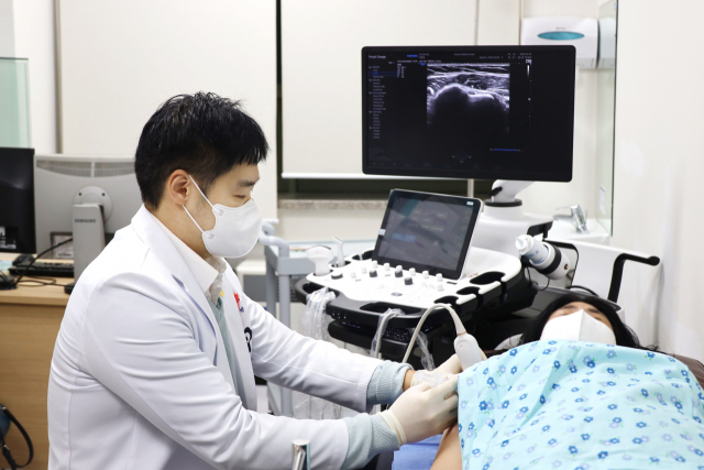 부산의료원 정형외과 노영민 과장이 어깨 통증 환자를 치료하고 있다. 부산의료원 제공