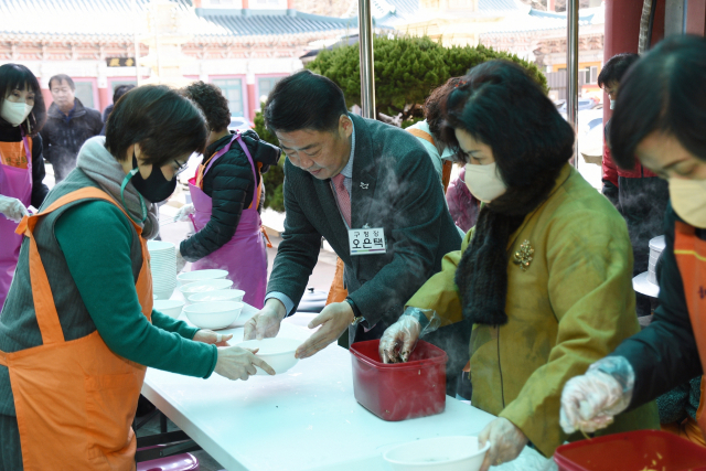 (재)부산동명불원(원장 원순스님)은 지난 31일 오은택 남구청장이 참석한 가운데 어르신과 신도를 위해 (사)부산밥퍼나눔본부, 부산남구자원봉사센터와 ‘사랑의 떡국나눔’ 행사를 개최했다.