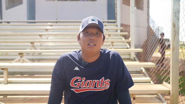 롯데 자이언츠 투수 서준원이 2일 롯데 전지훈련장인 괌 데데도스포츠컴플렉스에서 <부산일보> 인터뷰에 응하고 있다. 괌(미국)=이재화PD