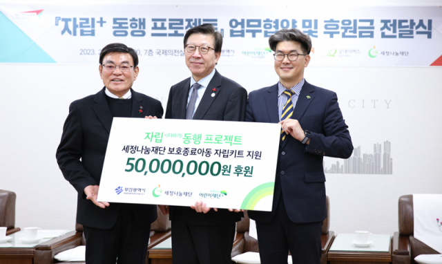 세정나눔재단은 ‘자립 더하기 동행 프로젝트’ 사업비 5000만 원을 후원하고, 전달된 후원금은 부산지 역의 자립준비청년을 위한 ‘자립키트’ 물품 구입비로 사용하게 된다.