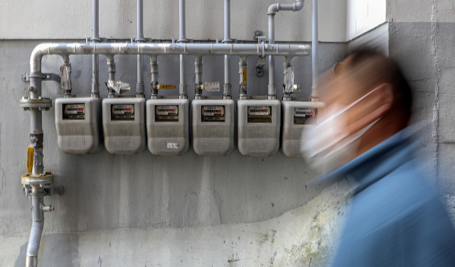 도시가스 요금 인상으로 난방비 부담이 커지고 있다. 5일 부산 부산진구의 한 빌라 외벽에 부착된 가스계량기. 김종진 기자 kjj1761@