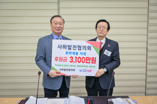 부산 사하발전협의회(회장 오철규)는 최근 정기총회에서 사하구청(구청장 이갑준)에 후원금 3100만 원을 전달했다.