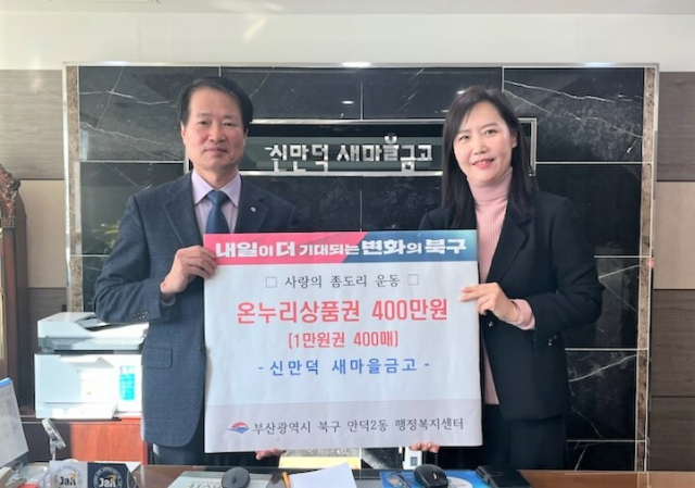 신만덕새마을금고(이사장 조관곤)는 최근 경제적으로 어려움을 겪고 있는 이웃을 위해 부산 북구 만덕2동 행정복지센터(동장 김희숙)에 400만 원 상당의 온누리상품권을 기탁했다.