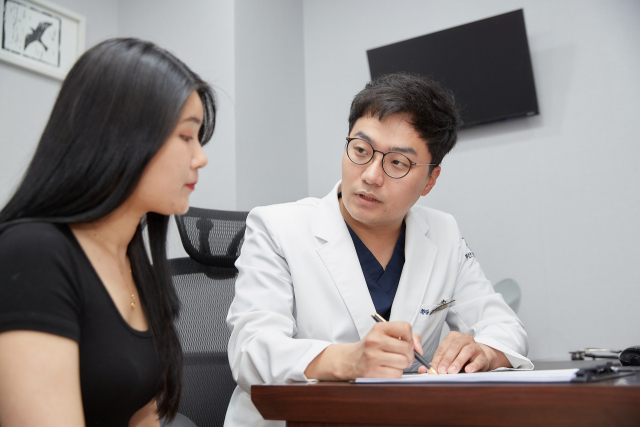 김무건 원장이 코골이와 수면무호흡증에 대해 상담하는 모습. BS숨이비인후과 제공