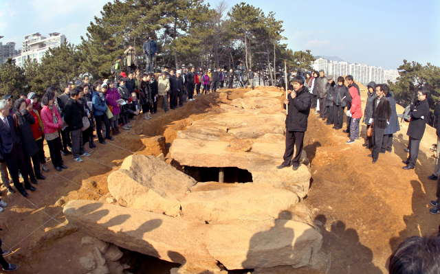 부산의 복천동고분군과 연산동고분군은 금관가야와 가야 전환기의 대표적 유적이다. 사진은 2012년 부산 연산동고분군 현장 설명회 모습. 부산일보DB