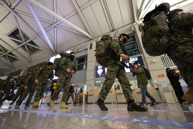 튀르키예 지진 실종자 수색 등을 위한 대한민국 긴급구호대(KDRT) 대원들이 7일 오후 인천국제공항 제1여객터미널에서 출정식을 마친 뒤 탑승을 위해 이동하고 있다. 정부는 외교부, 소방청, 코이카, 국방부 등으로 구성된 110여 명의 긴급구호대를 튀르키예로 파견한다. 연합뉴스