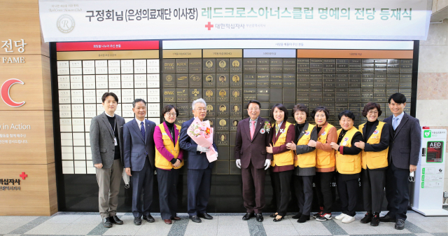 대한적십자사 부산지사(회장 서정의)는 7일 구정회 은성의료재단 이사장이 부산적십자사 레드크로스 아너스클럽에 가입하고 명예의 전당 등재식을 가졌다고 밝혔다.