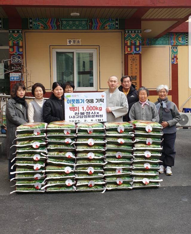 부산 금정구 천불정사·(사)고담정토문화원(주지 법경 스님)은 최근 경내에서 정월대보름 날을 맞아 어르신 150명을 초청해 점심 공양을 대접하고 정전2동 복지센터(동장 허은숙)에 쌀1000kg를 전달했다.