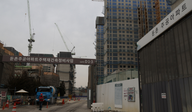올해 금융시장 최대 리스크로 부동산 프로젝트 파이낸싱(PF) 부실이 꼽히는 가운데 연체율에도 '경고등'이 켜졌다. 사진은 지난달 17일 서울 강동구 둔촌주공아파트 재건축(올림픽파크포레온) 현장 모습. 연합뉴스