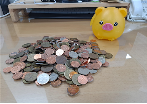 돼지저금통에는 총 6170원의 동전으로 가득차 있었다.