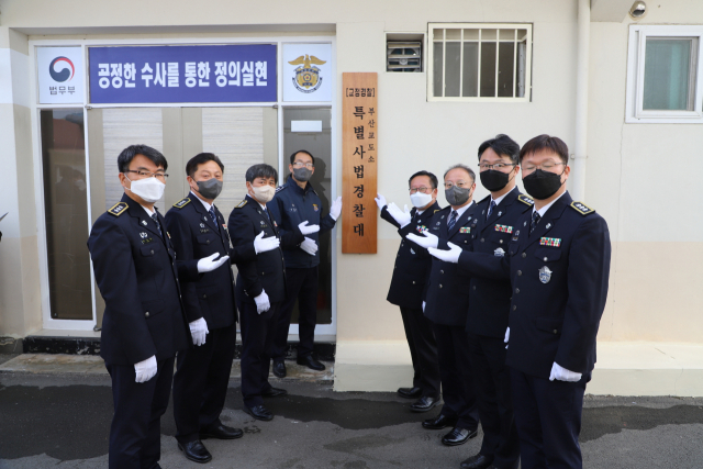 부산교도소(소장 최진규)는 최근 교정시설 내 범죄 엄정 대응을 위한 ‘부산교도소 특별사법경찰대(대장 임홍택)’를 공식 출범하고 현판식을 가졌다.