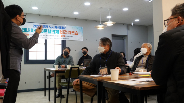또, 모라 도시재생대학은 워크숍을 통해 마을공동체의 비전과 과제를 수립하고 그 실행방법을 찾아보며 주민들이 마을의 미래를 구체적으로 그려보는 커리큘럼으로 진행된다.