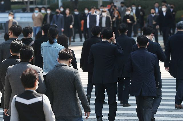 사진은 점심시간 여의도 증권가에서 일하는 직장인들이 식당을 찾아 이동하고 있다.연합뉴스