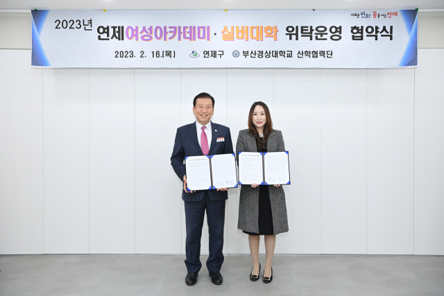 부산 연제구청(구청장 주석수)은 16일 구청 소회의실에서 부산경상대학교 산학협력단(단장 이영주)과 연제여성아카데미·연제실버대학 위탁운영 협약을 체결했다.