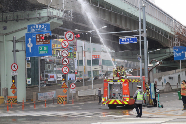 [포토뉴스] 부산북부소방서, 방음터널 화재 진압 훈련
