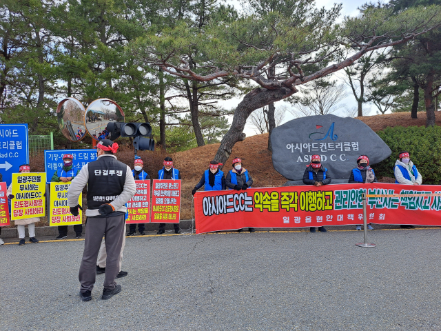 주민들 항의 집회 갈등 장기화 조짐… 아시아드CC 주민복지기금 분쟁 안갯속