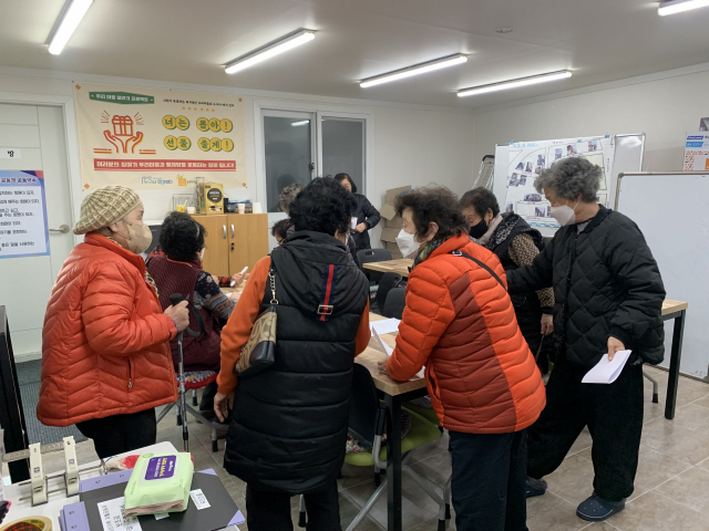이날 오후 2시 정겨움 센터에는 정기모임에 참석하려는 동네 어르신들이 삼삼오오 들어왔다. 센터가 들어서기 전 개금3동 어르신들은 대중교통으로 20분 안팎이 걸리는 복지관이나 경로당을 찾아야 했다. 이마저도 코로나19로 줄줄이 폐쇄되면서 집 밖 외출이 막혔다.
