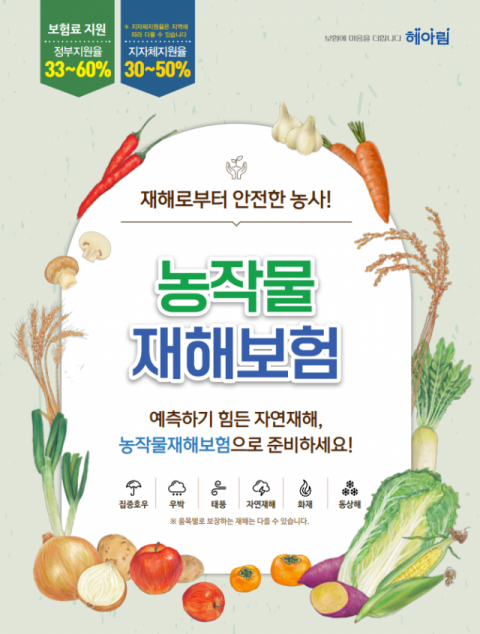 과학기술이 발달한 현대에도 갑자기 찾아오는 가뭄과 태풍, 호우를 완벽하게 예측하고 피하기는 어렵다. 이에 자연재해로 농작물의 수확량이 감소하는 경우 그 피해를 보장함으로써 경영을 안정화하고 생산을 유지하기 위해 농작물 재해보험을 국도비 보조사업으로 추진하고 있다.