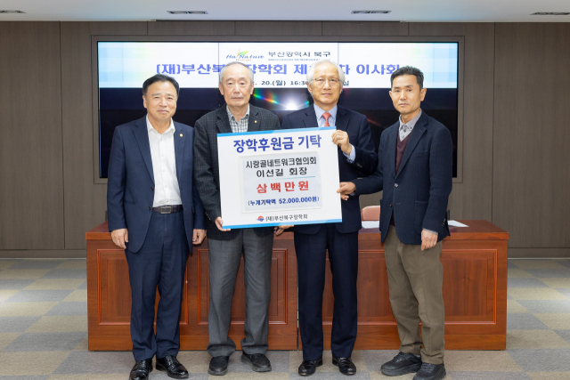 시랑골네트워크협의회 이선길 회장은 지난 20일 지역의 청소년과 청년의 학업에 힘을 보태고자 (재)부산북구장학회에 장학기금 300만 원을 전달했다.