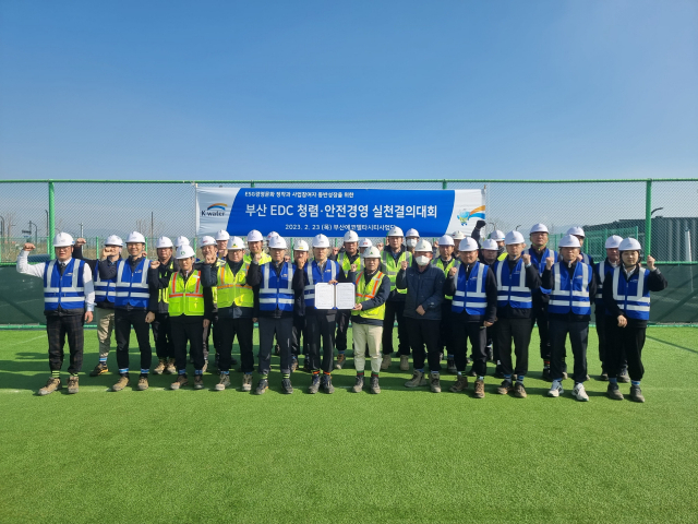 한국수자원공사 부산EDC사업단(단장 이상종) 전체 임직원은 부산EDC 친수구역 조성사업 참여자와 함께 최근 ‘청렴·안전 경영실천 결의대회’를 진행했다.