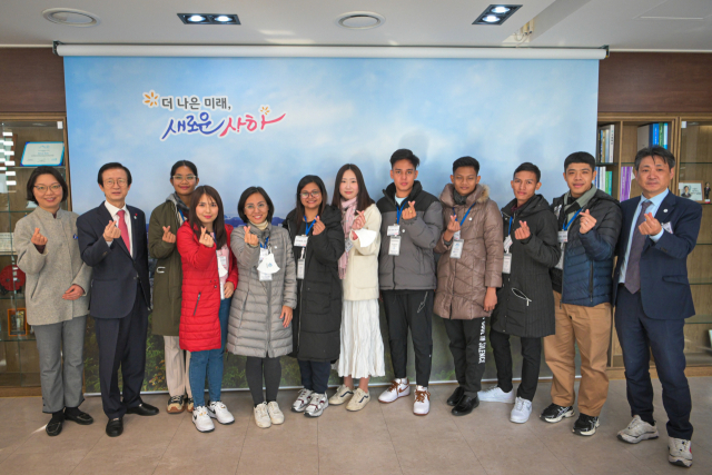 부산 사하구청(구청장 이갑준)은 지난 23일 미얀마 글로벌 영 리더 청소년 8명의 방문단을 접견해 부산의 발전 사례와 구 주요관광지를 소개하고 2030 부산세계박람회 유치를 홍보했다.