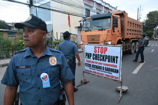 지난 4일 필리핀의 로엘 데가모 주지사가 피살된 곳에서 경찰이 검문을 벌이고 있다. AFP연합뉴스
