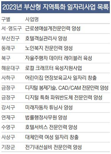 구·군별로 색깔이 뚜렷한 ‘부산형 지역특화 일자리 사업’이 본격적으로 추진된다.