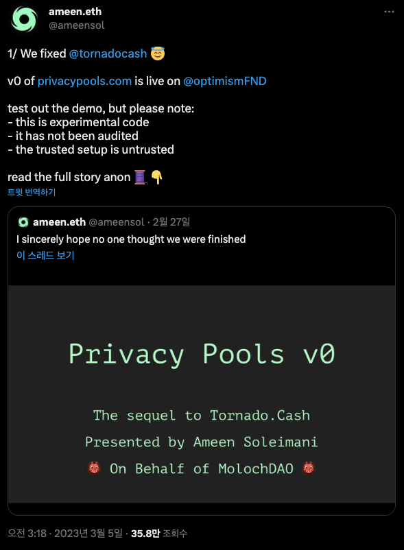 가상자산의 거래는 익명으로 진행되지만, 해당 거래가 범죄와는 무관하다는 것은 증명 가능한 ‘코인 믹서’가 등장했다. 새로운 코인 믹서인 프라이버시 풀스(Privacy Pools)는 지난 5일(현지시간) 옵티미즘 네트워크에 버전0 데모를 출시했다.