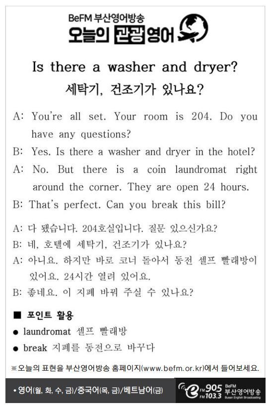 [관광 영어] 세탁기, 건조기가 있나요?