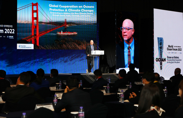 지난해 10월 부산 롯데호텔에서 열린 제16회 세계해양포럼 기조연설. 부산일보DB