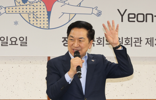 국민의힘 김기현 당 대표 후보가 5일 오전 서울 여의도 국회 의원회관에서 열린 YPT 청년정책 콘테스트에서 인사말을 하고 있다. 연합뉴스