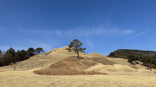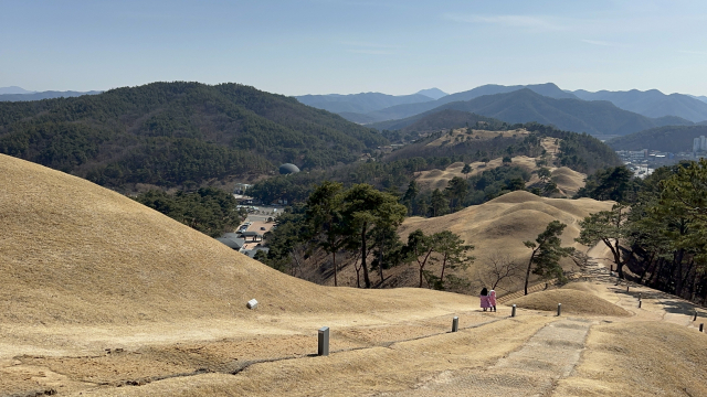 잊힌 왕국 '대가야'의 역사를 오롯이 품은 경북 고령군 '지산동 고분군'. 44호분으로 올라가는 길에서 내려다 보면, 능선을 따라 점점이 이어진 고분들이 한눈에 들어온다.