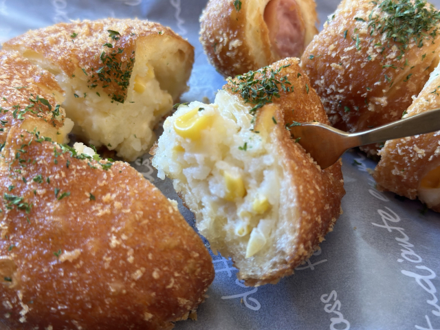 고령지역 전통 가게인 개진고로케의 대표 메뉴 중 하나인 옥수수 고로케.