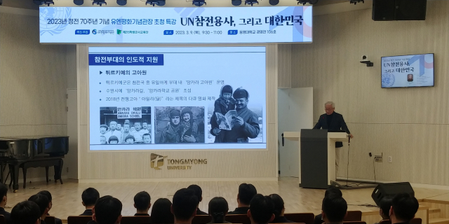 김광우 유엔평화기념관 관장(예비역 준장)은 2023년 정전 70주년을 기념해 ‘UN참전용사, 그리고 대한민국’이라는 주제로 최근 동명대학교(총장 전호환)에서 특강을 가졌다.