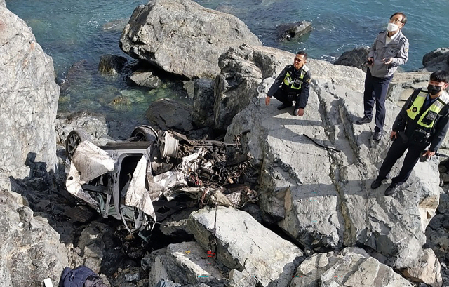 내용 거제시 전망대 아래로 추락해 파손된 차량 (거제=연합뉴스) 이준영 기자 = 12일 오전 10시 48분께 경남 거제시 남부면 해안도로 전망대를 뚫고 약 200m 아래로 추락해 파손된 스포츠유틸리티차량(SUV) 주변을 경찰이 살펴보고 있다. 2023.1.12 [경남소방본부 제공. 재판매 및 DB 금지] (끝)