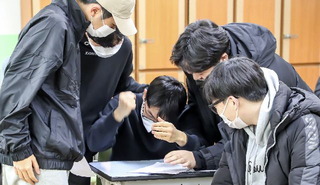 2023학년도 대학수학능력시험 성적표가 배부된 9일 오전 부산 남구 동천고등학교에서 3학년 학생이 자신의 수능 성적을 확인하고 있다. 부산일보DB