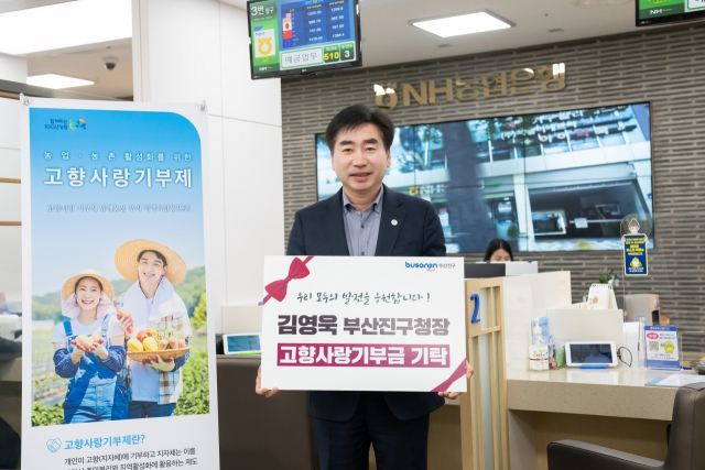 김영욱 부산진구청장이 지난 13일 고향사랑기부제의 성공적인 정착과 기부 동참 분위기 확산을 위해 고향과 자매·교류도시 등 4개 도시에 고향사랑 기부금을 기탁했다.