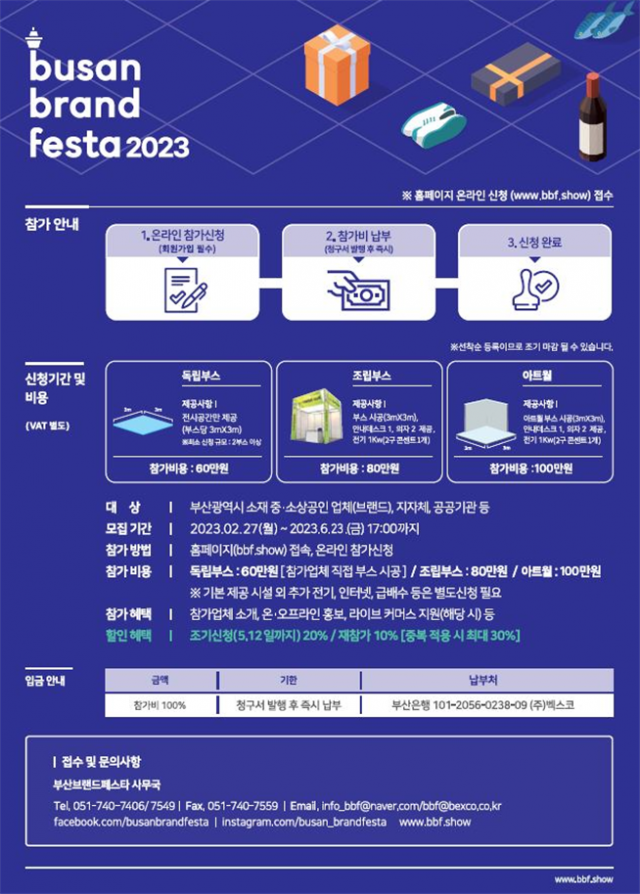참가 신청은 행사 누리집(www.bbf.show)을 통해 온라인 접수가 가능하며, 한정된 공간에 공개모집을 진행하는 만큼 조기 마감될 수 있다. 자세한 행사 정보 및 문의 사항은 행사 사무국(051-740-7406)으로 연락하면 안내를 받을 수 있다.
